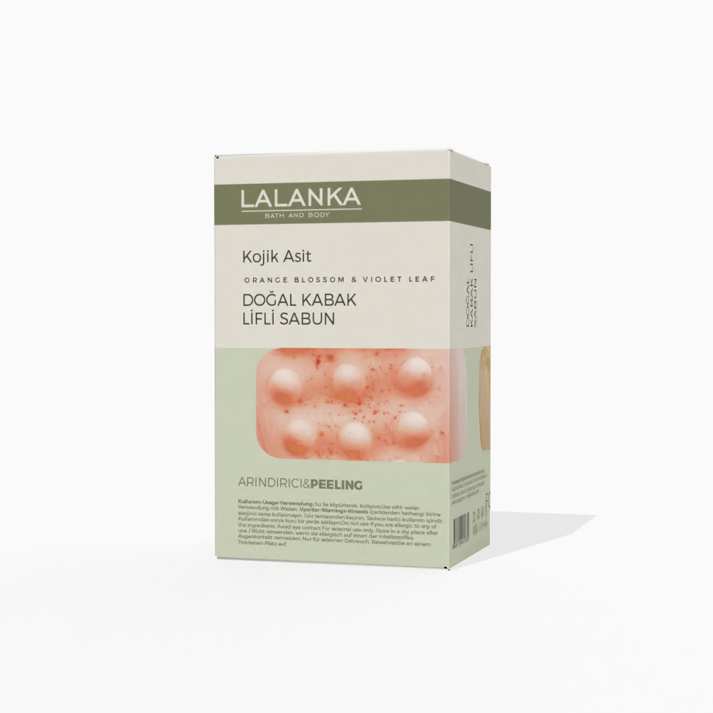 Kojik asitli doğal kabak lif sabunu, peeling etkisiyle cildi arındırır, leke karşıtı bakım sunar ve cilt tonunu eşitler.