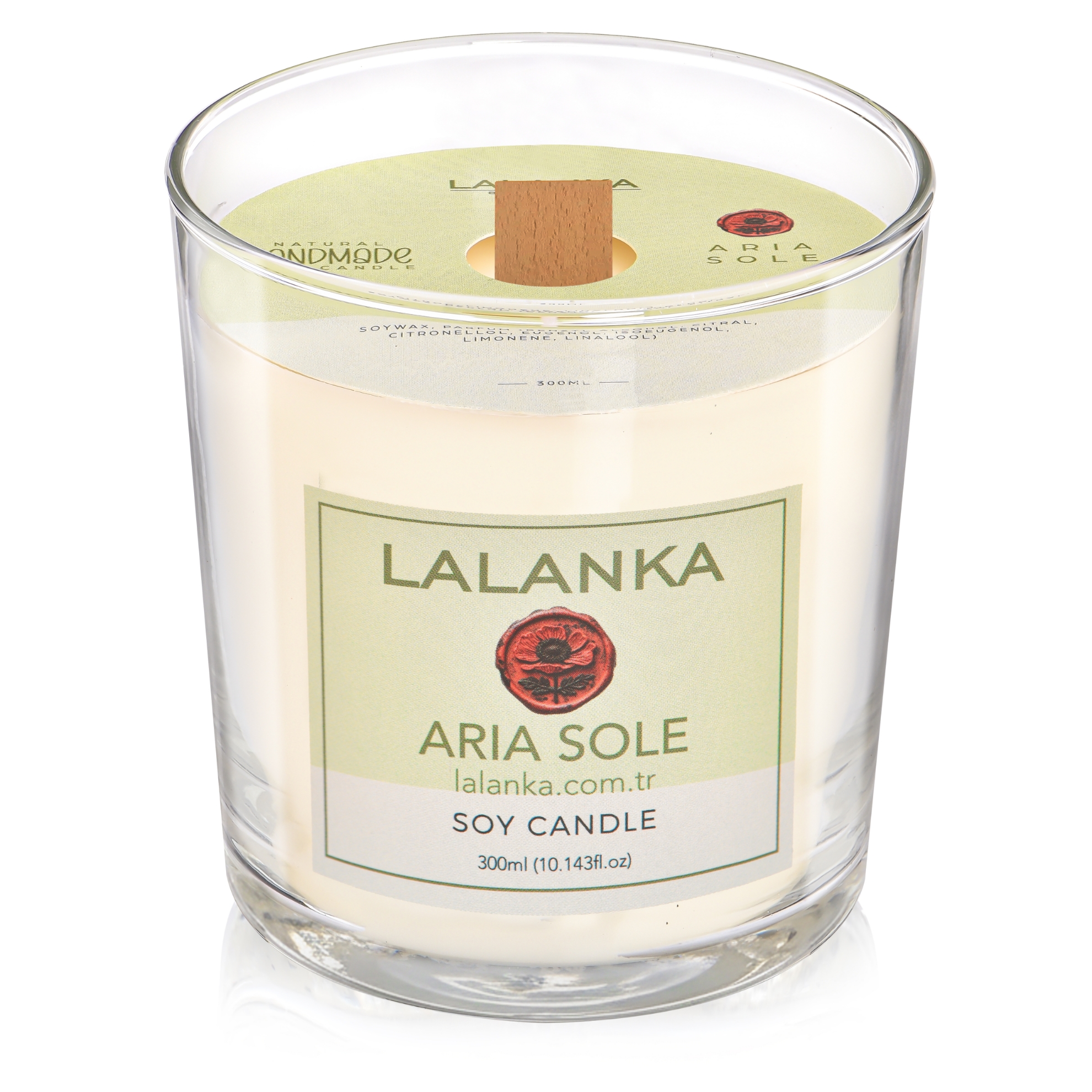 Aria Sole soya mumu, doğal içerikleriyle sağlıklı yanar, ortamı tazeleyen hafif ve zarif bir koku yayar.