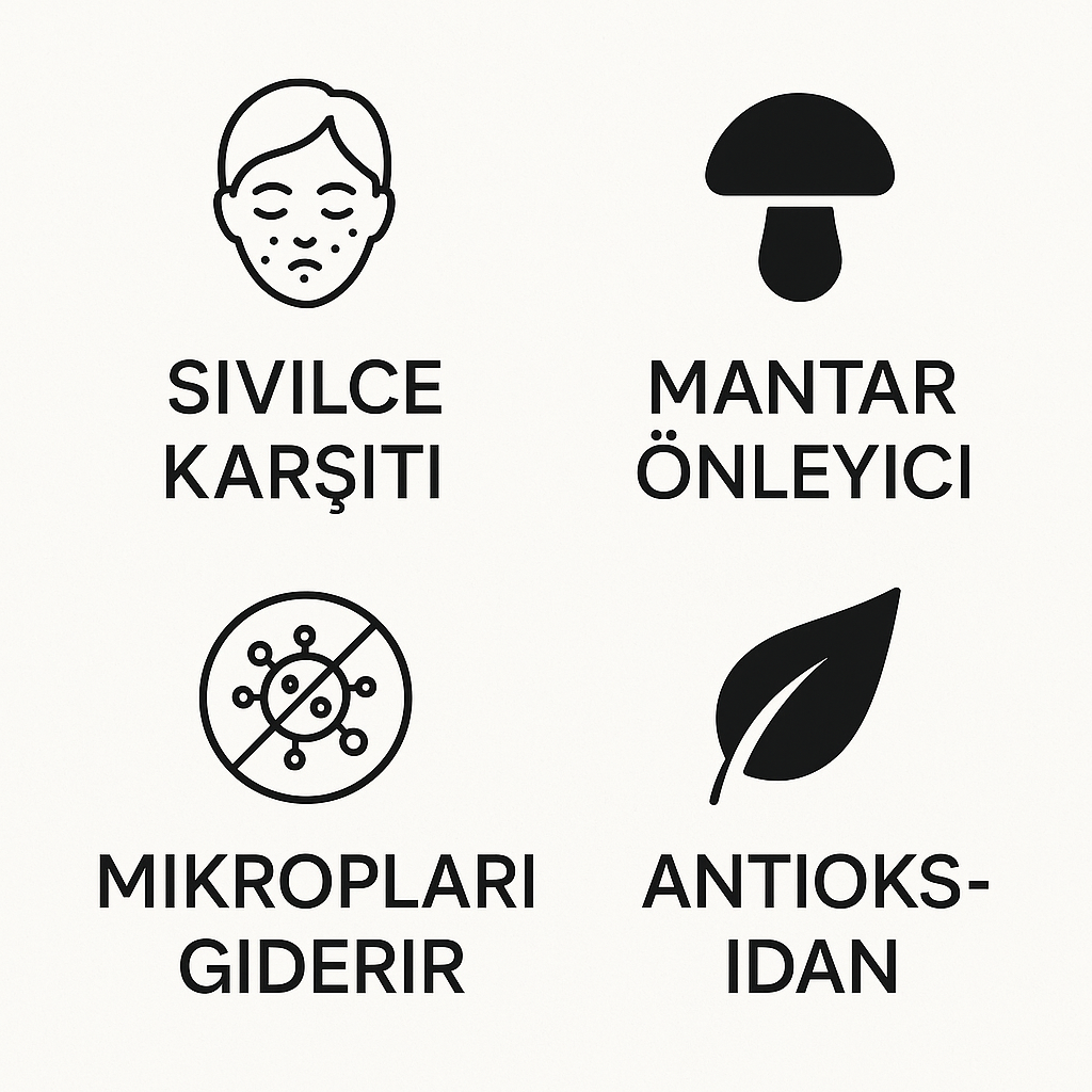 Çay ağacı uçucu yağı, cildi arındırır, akneyle savaşır ve saç derisini dengeler. Doğal ve güçlü bakım sağlar.