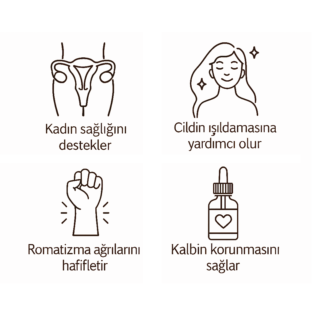 Çuha uçucu yağı, cilt elastikiyetini artırır, kuruluğu giderir ve hormonal dengesizlik kaynaklı sorunlara destek sağlar.