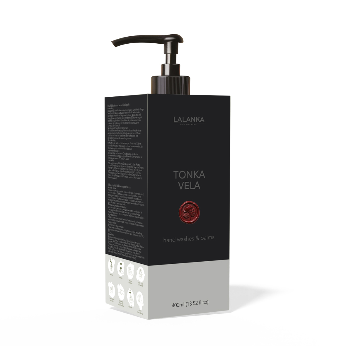 Tonka Vela Sıvı Sabun, sıcak ve derin tonka notalarıyla elleri nazikçe temizlerken duyusal bir temizlik ritüeli sunar. Günlük kullanıma uygun, sofistike ve kalıcı bir koku bırakır.
